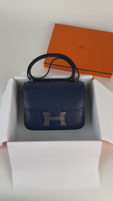 CONSTANCE 18 (MINI) OSTRICH LEATHER BLEU SAPHIR WITH PALLADIUM HARDWARE (PHW)